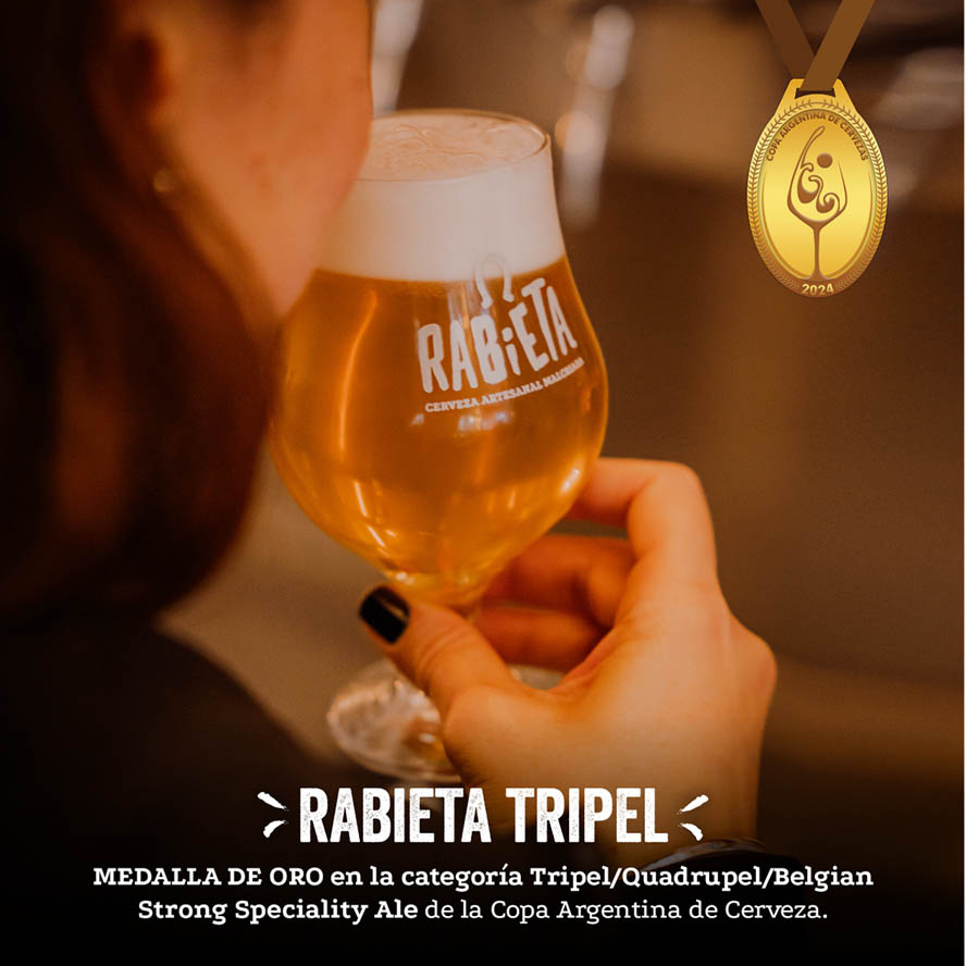 Lucía, proudly celebrating Rabieta Tripel’s gold medal at the latest Copa Argentina de Cerveza in the Tripel/Quadrupel/Belgian Strong Specialty Ale category, added: